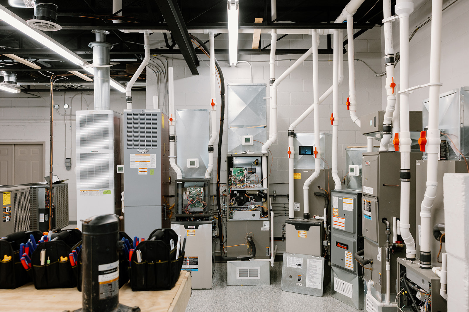 Each section of the facility is carefully curated to provide the most practical learning experience possible. Our modular learning stations enable technicians to gain firsthand experience in diagnosing and repairing common residential service issues. Trainees get to dismantle, analyze, and reassemble various systems, building their technical knowledge and confidence step by step.